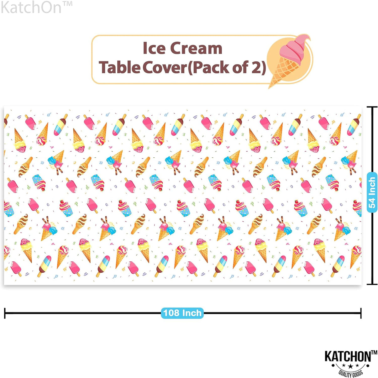 KatchOn, Large Ice Cream Tablecloth - 54x108 Inch, Pack of 2 | Ice Cream Party Tablecloth for Ice Cream Party Decorations | Ice Cream Birthday Party Decorations | Ice Cream Table Cloths for Parties