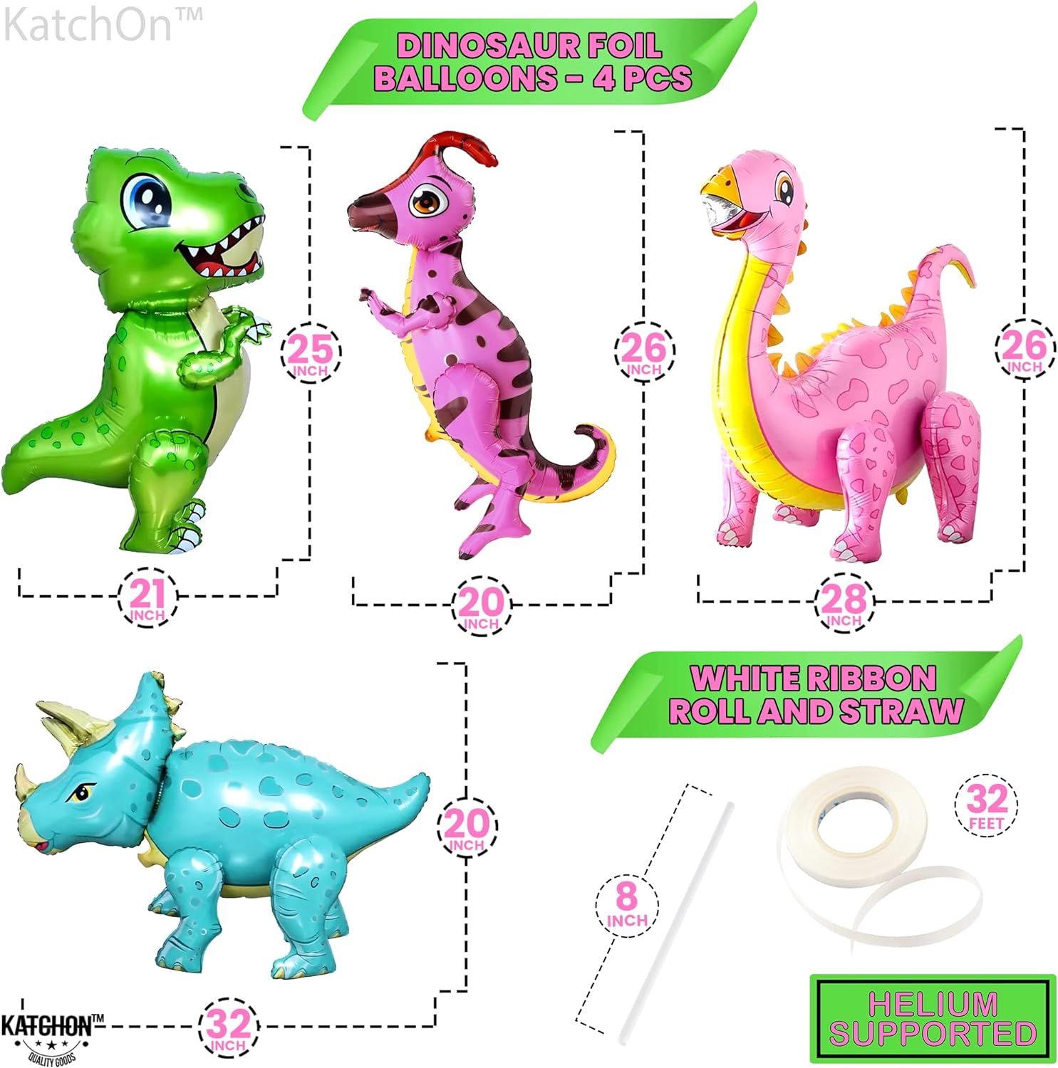 KatchOn, Large Pink Dinosaur Balloons for Birthday Party - Pack of 4 | Pink Dino Balloons for Dinosaur Party Decorations | Dinosaur Birthday Party Supplies for Three Rex Birthday Decorations Girl