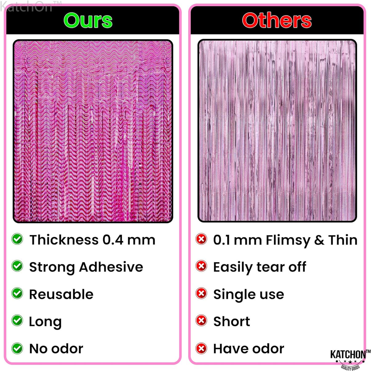 STURDY AND DURABLE | REUSABLE – Shiny Pink Fringe Curtain is a perfect pink fringe backdrop or Different theme party. Pink tinsel curtain is durable enough to be re-used on the any other pink birthday decorations and easy to keep and store for upcoming hot pink birthday decorations party, pink party backdrop with a Grade ‘A’ quality foil material pink tinsel backdrop. Also the cut of the foil fringe curtains party decorations is pretty wide, pink foil curtain won't easily strip down.