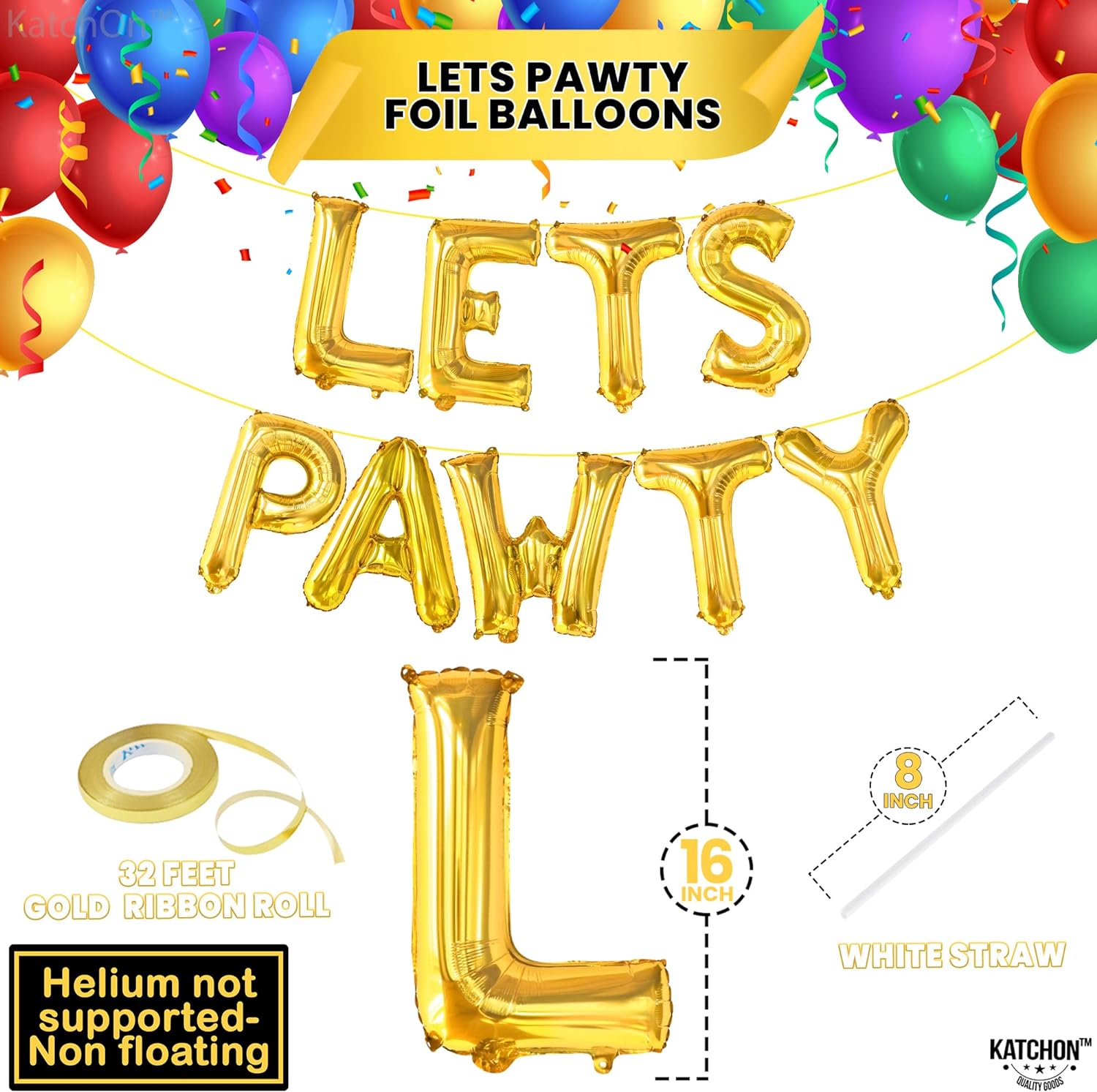 SELF SEALING - 16 INCH | EASY TO INFLATE – Make a big statement at your dog's birthday party with our "LETS PAWTY" birthday dog banner. It comes with a Lets pawty banner balloons, 9 pieces. Designed with big 16 inch” foil letters, this dog birthday banner lets you celebrate special moments with family. The lets pawty balloons are self sealing, holding air for long time. Make your dog's birthday party one to remember with Lets Pawty birthday balloons or puppy balloons, lets pawty gold balloons.
