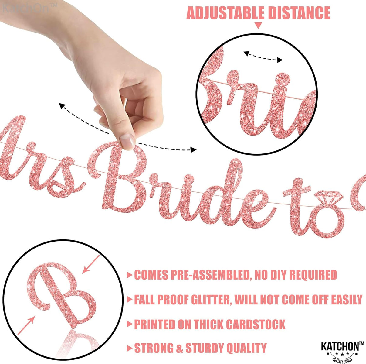BUY WITH CONFIDENCE | ELEVATE YOUR EXPERIENCE: These bachelorette decorations with bride to be sign will surely make a remarkable in your bridal party supplies set-up. We aim to give you good service if you are not satisfied with the rose gold bridal shower decorations for rose gold bachelorette party decorations, or any party events Our customer support team is here to assist you. The Miss to mrs banner is easy to set up and will make your special day even more memorable.