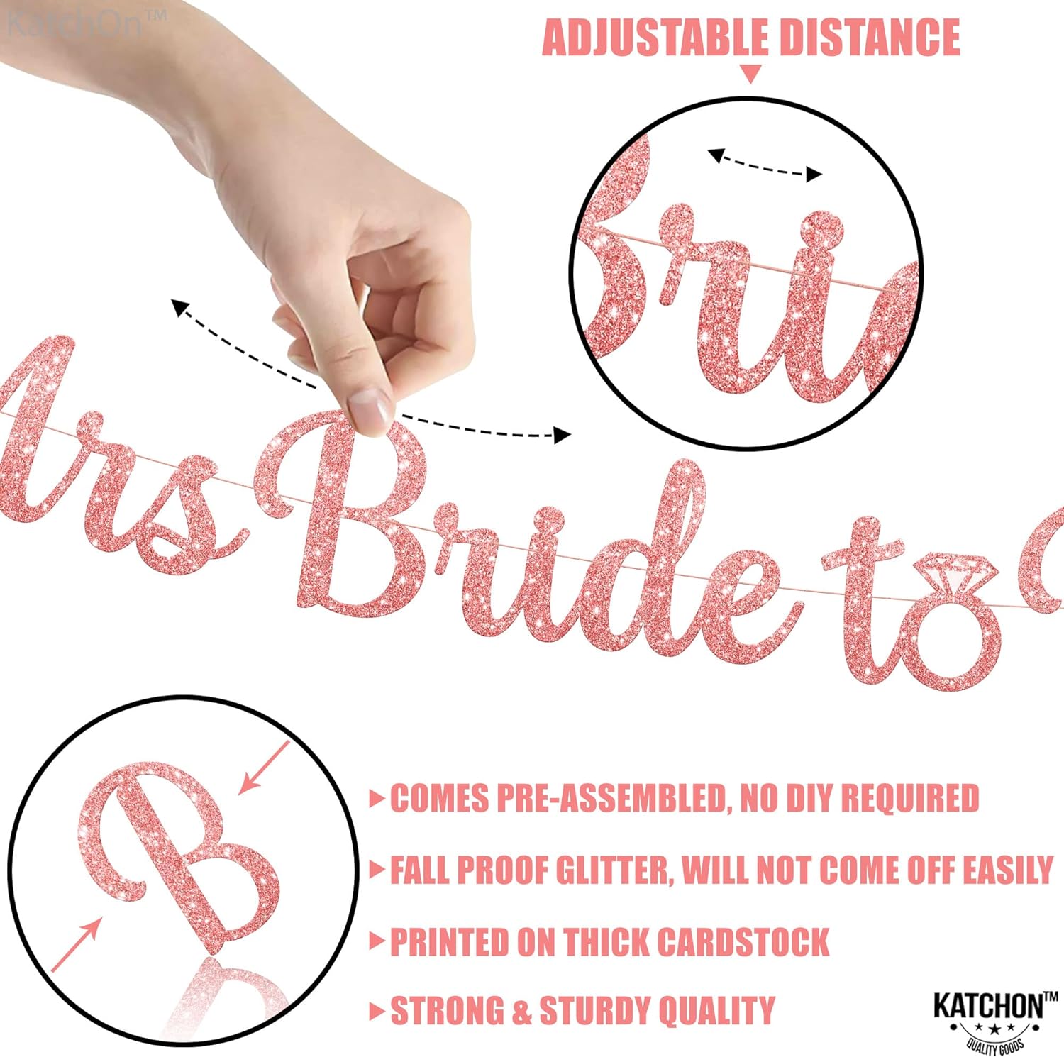 KatchOn, Miss to Mrs Bride to Be Banner - 10 Feet, Pre-Strung No DIY | Rose Gold Glitter Miss to Mrs Banner | Rose Gold Bridal Shower Decorations | Bridal Shower Banner, Bachelorette Party Decorations