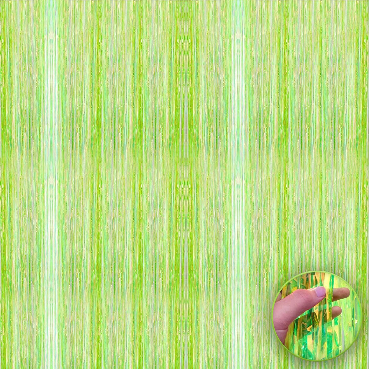 MAKE A CONFIDENT CHOICE | WE STAND BY YOUR SATISFACTION: Customer satisfaction is our main objective, so we personally made sure that the materials we used in lime green fringe curtain is Grade "A" Quality. If you are not satisfied with lime green foil fringe curtain as st patricks day decorations, then we will assist you. Hang neon green foil fringe curtain or glow party supplies as doorway streamers or neon green foil photo booth backdrop as jungle party decorations