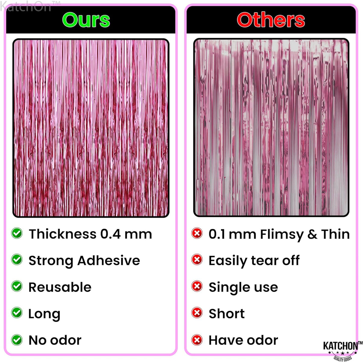 STURDY AND DURABLE | REUSABLE : This shiny Pink Fringe Curtain is a perfect pink foil backdrop for different theme party. Pink tinsel curtain for pink back drop is durable enough to be re-used on the any other party and very easy to keep and store for your upcoming pink birthday decorations party. Also, the cut of the foil fringe pink party supplies is pretty wide and pink foil curtain won't easily strip down. pink streamer backdrop is also ideal galentines decorations.