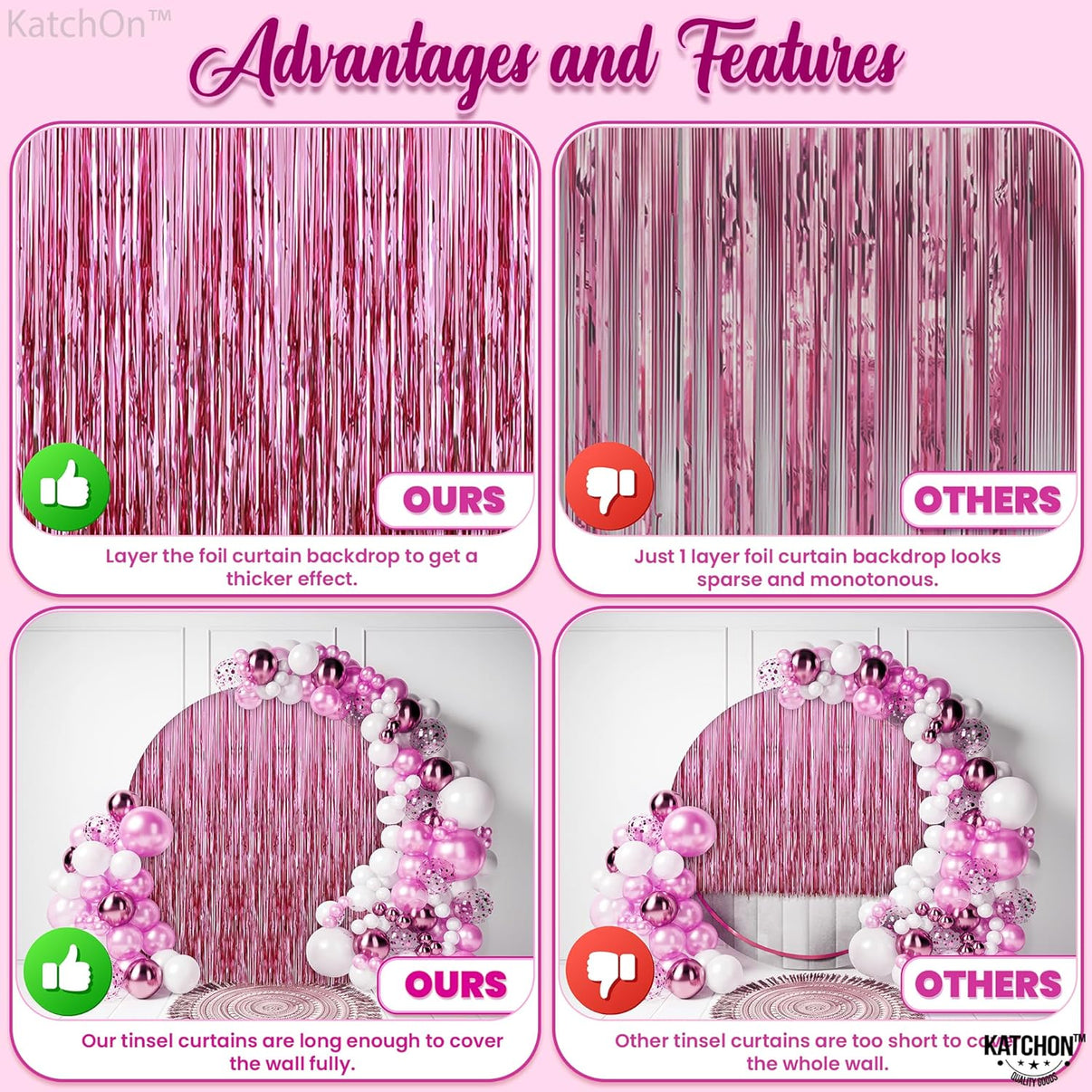 XTRALARGE 6.4X8 FEET | PACK OF 2, PINK STREAMERS BACKDROP : Thinking about what to add on your party backdrops? With this Pink Fringe Curtain Backdrop, you can make an elegant entrance curtain for your pink party decorations. Let them be amazed with your great DIYs with pink foil fringe curtain. This package contain pack of 2 pink tinsel backdrop with Xtralarge size of 6.4x8 Feet and make elegant backdrop for valentines day decorations or galentines day decorations for party.