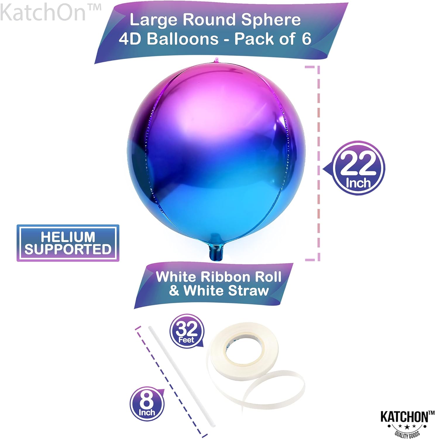 PACK OF 6 | INFLATABLE | HELIUM SUPPORTED - This classy and gradient theme of purple iridescent balloons is perfect for your galaxy birthday decorations, purple and blue party decorations, baby shower, purple bachelorette party decorations, weddings and many other occasions. This sturdy big purple and blue balloons comes with pack of 6, each 22 inch size, 32 feet (10M) ribbon and straw to inflate. This metallic blue and purple balloons will create lot of good memories.