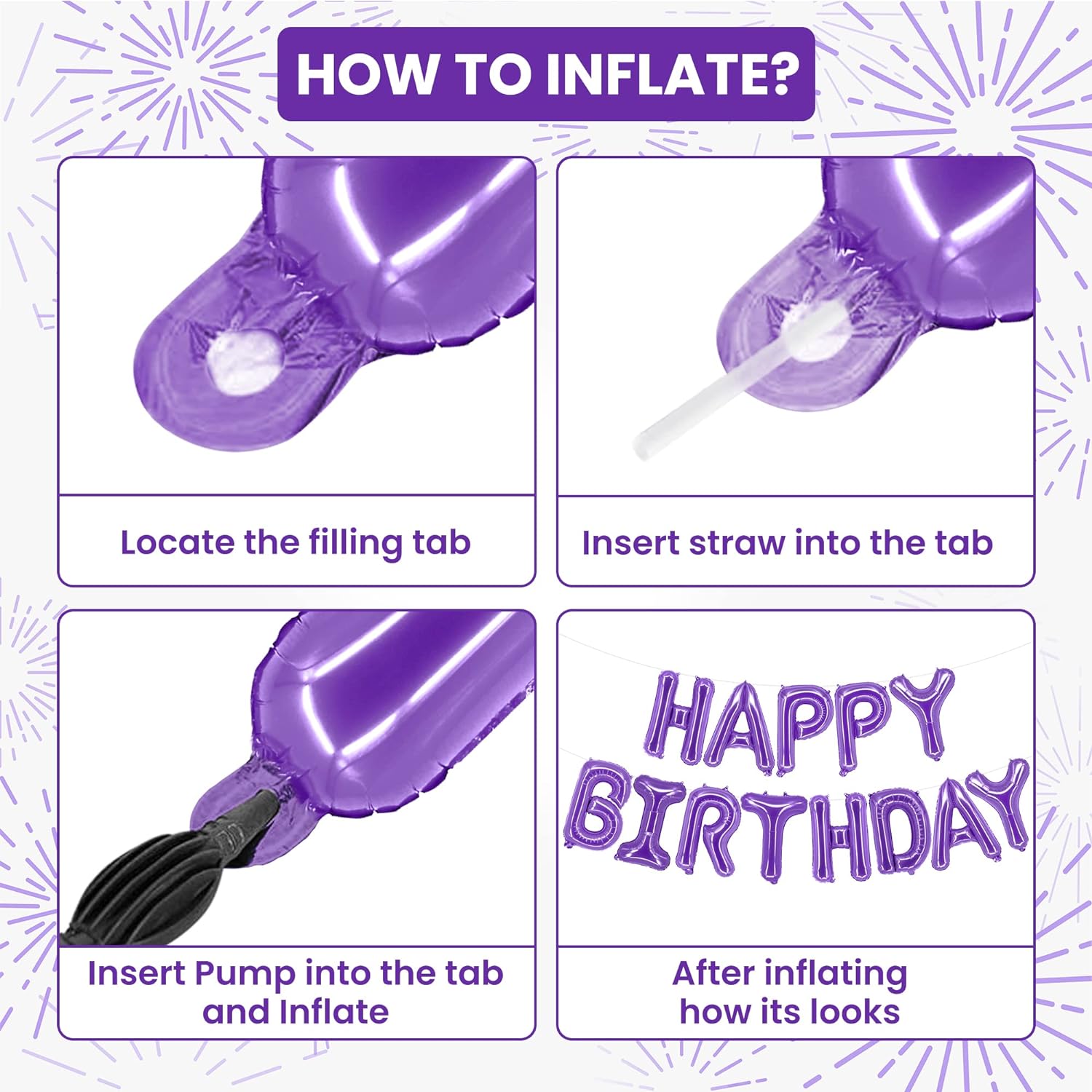 SELF-SEALING | INFLATABLE - Happy birthday decorations purple come with 12 pieces or 12 letters as happy birthday mylar balloon. Designed with big 16” foil letters, these purple birthday decorations for girls lets you celebrate special moments with children, friends, and family. Purple birthday party decorations is self sealing. Pink and purple birthday decorations for women are a great way to add a touch of fun and elegance to a girl's birthday party and make it a memorable occasion.