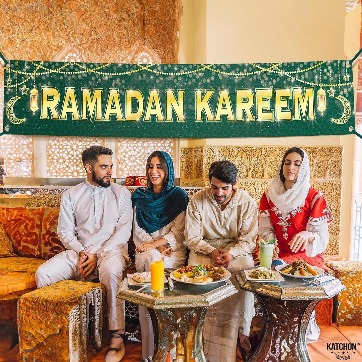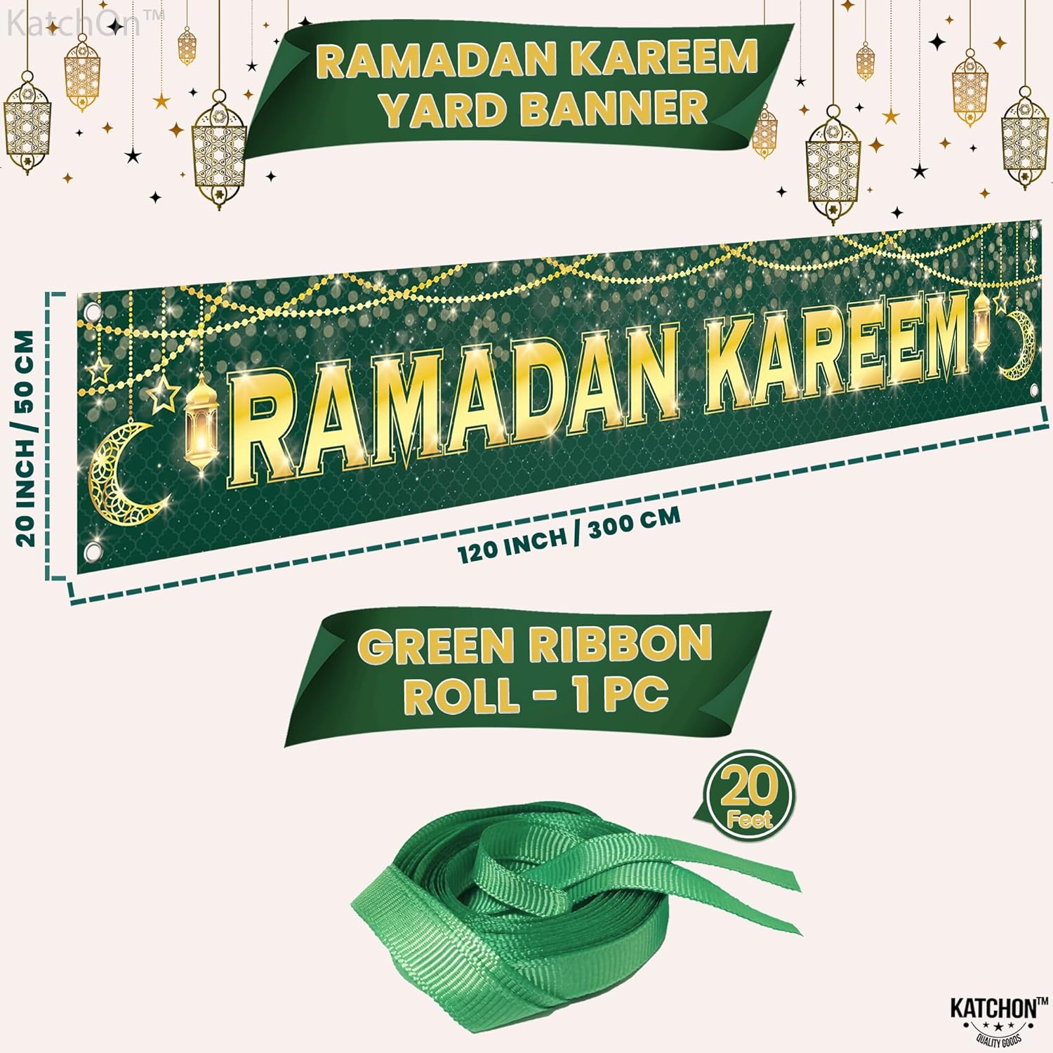 KatchOn, Ramadan Kareem Banner for Ramadan Decorations - Xtra Large 120x20 Inch | Ramadan Mubarak Banner for Ramadan Decorations Outdoor | Green and Gold Ramadan Yard Sign, Eid Decorations for Home