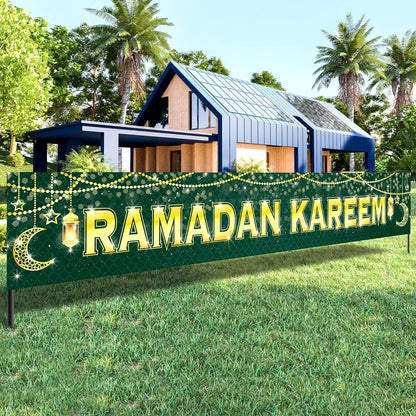 🌙 HUGE : 120X20 INCH | WELCOME THE MONTH OF BLESSING WITH RAMADAN KAREEM BANNER : Enter the month of ramadan with peace and positivity with this Green Ramadan Mubarak Yard Banner where the green color depicts the beauty and harmony of the holy month of ramadan. This ramadan banner outdoor for green ramadan decorations for home 2024, outdoor ramadan decorations will be a great ramadan yard decor to welcome holy month of ramadan.