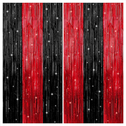 XTRALARGE 6.4X8 FEET | SHINY TWO DIFFERENT COLOR OF FOIL CURTAIN : Thinking about what to add on your party backdrops? With this black and Red Fringe Curtain Backdrop, you can make Merry Sneaker Ball Decorations for home or an elegant entrance. Let them be amazed with your great DIYs with foil red and black backdrop. With a touch of your creativity, you can make an elegant black and red fringe curtain or red and black party supplies at the center of your venue. Create your own DIYs now!
