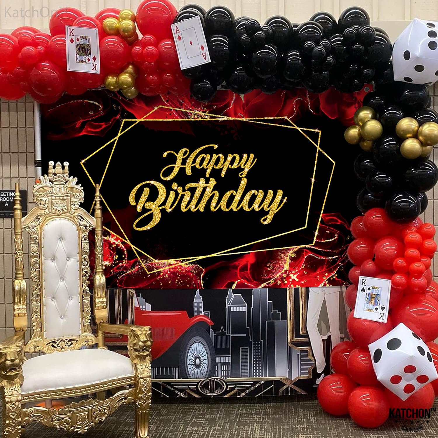 TAKE MEMORABLE PICTURES FOR SOCIAL POSTS: This easy to assemble happy birthday backdrop red and black for men can be used as the PhotoBooth Backdrop a glittering happy birthday banner red and black for Casino theme birthday party decorations. Designed with flat surface and smooth edges, featuring superb workmanship an exquisite happy birthday backdrop men poster, memorable for black and red party decorations. This happy birthday banners is also used for red and black birthday backdrop for men.