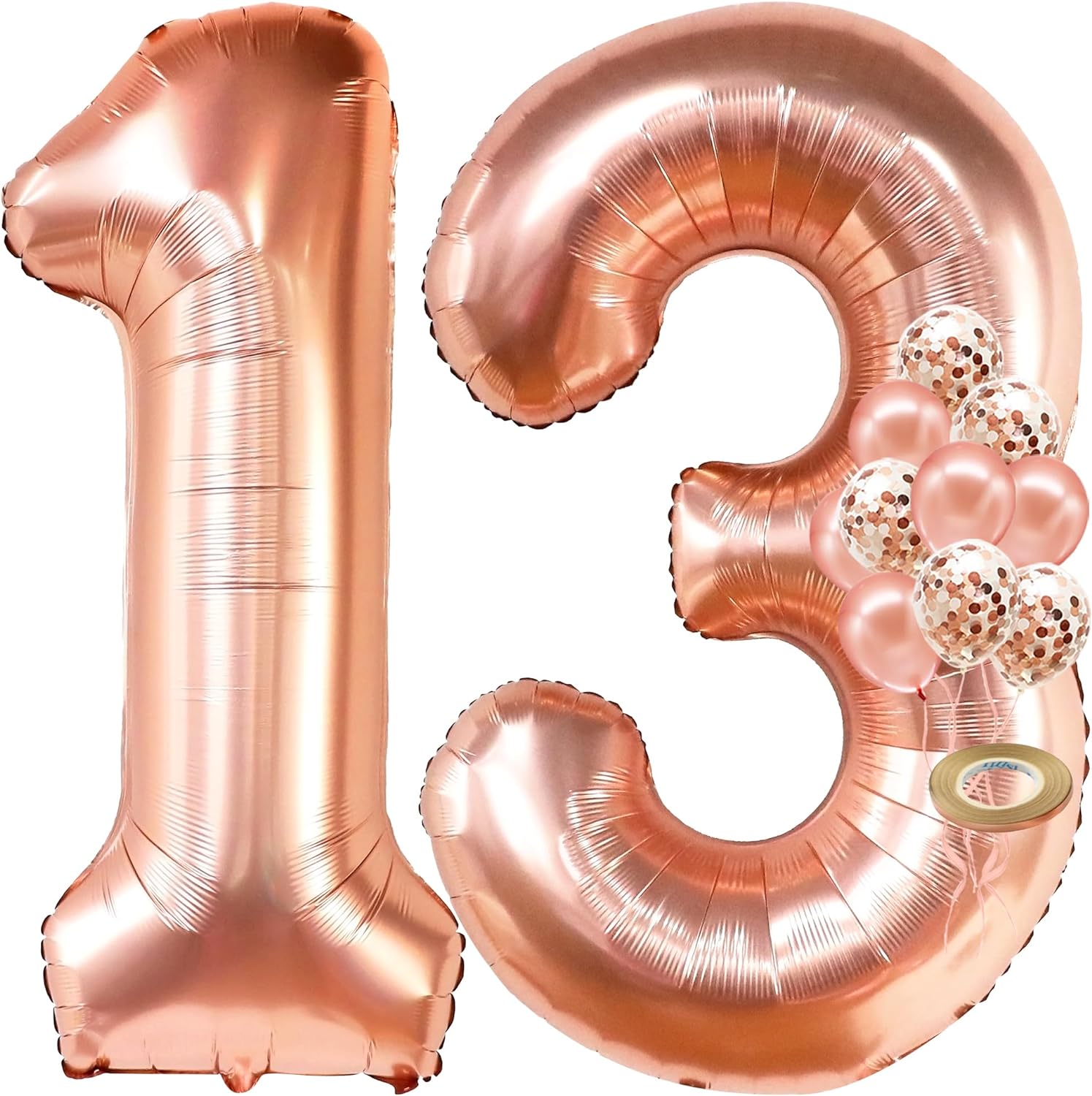 GIANT SIZE - 40 INCH | METALLIC FINISH 13 BALLOON : Looking for 31st or rose gold 13th birthday decorations for girls that will match your little angel’s rose gold princess themed birthday party? This 13 balloons for birthday girls that comes with a giant 13 rose gold balloons, pack of 5 Real Rose Gold Latex Balloons & pack of 5 Rose Gold Confetti Balloons will complete your thirteen birthday decorations for girls or anniversary event. These 13th birthday balloons have a Metallic Finish.