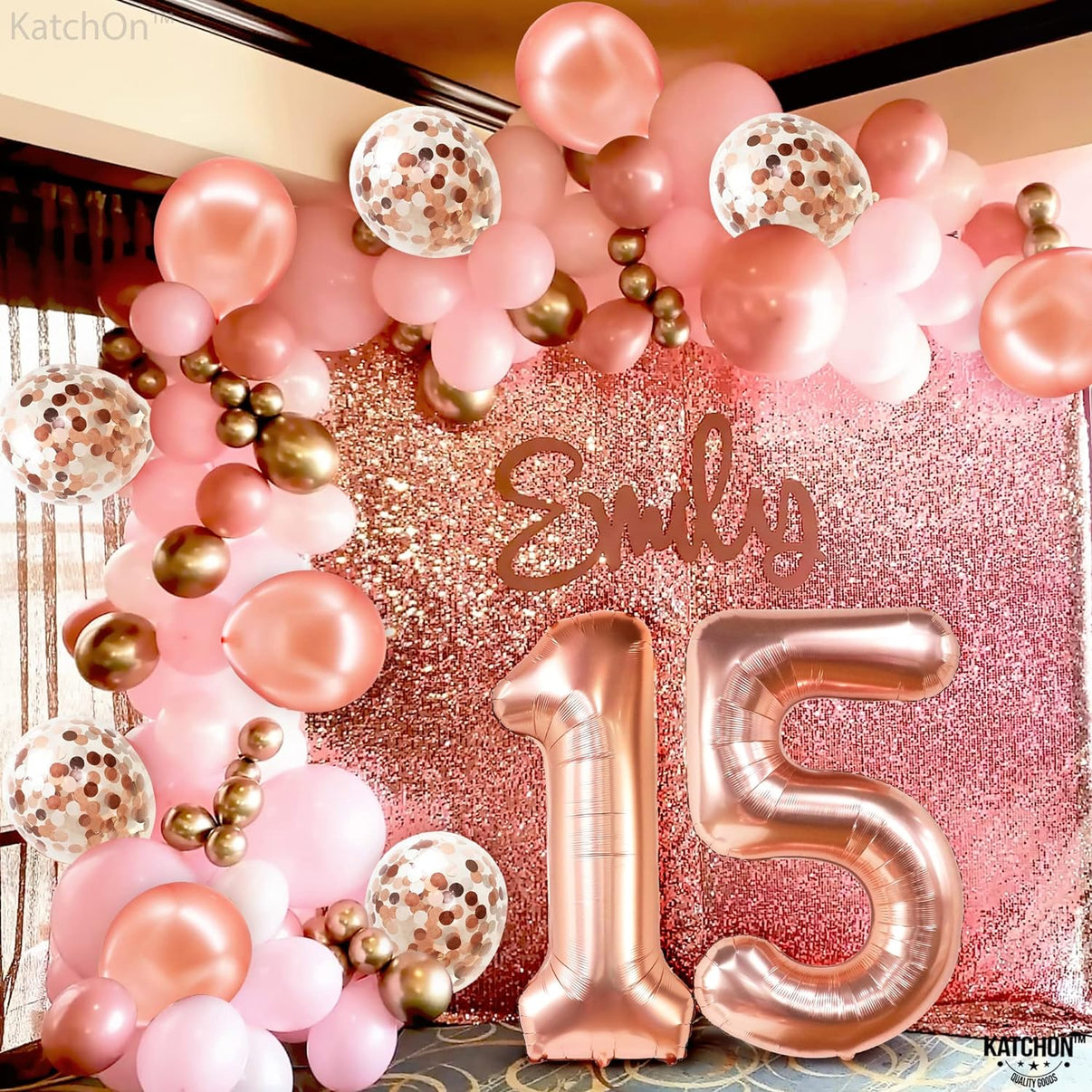 KatchOn, Rose Gold 15 Balloons Number - Big, 40 Inch | 15 Birthday Balloons with Confetti for Happy 15th Birthday Decorations for Girls | Quinceanera Decorations | 15 Birthday Decorations for Girls