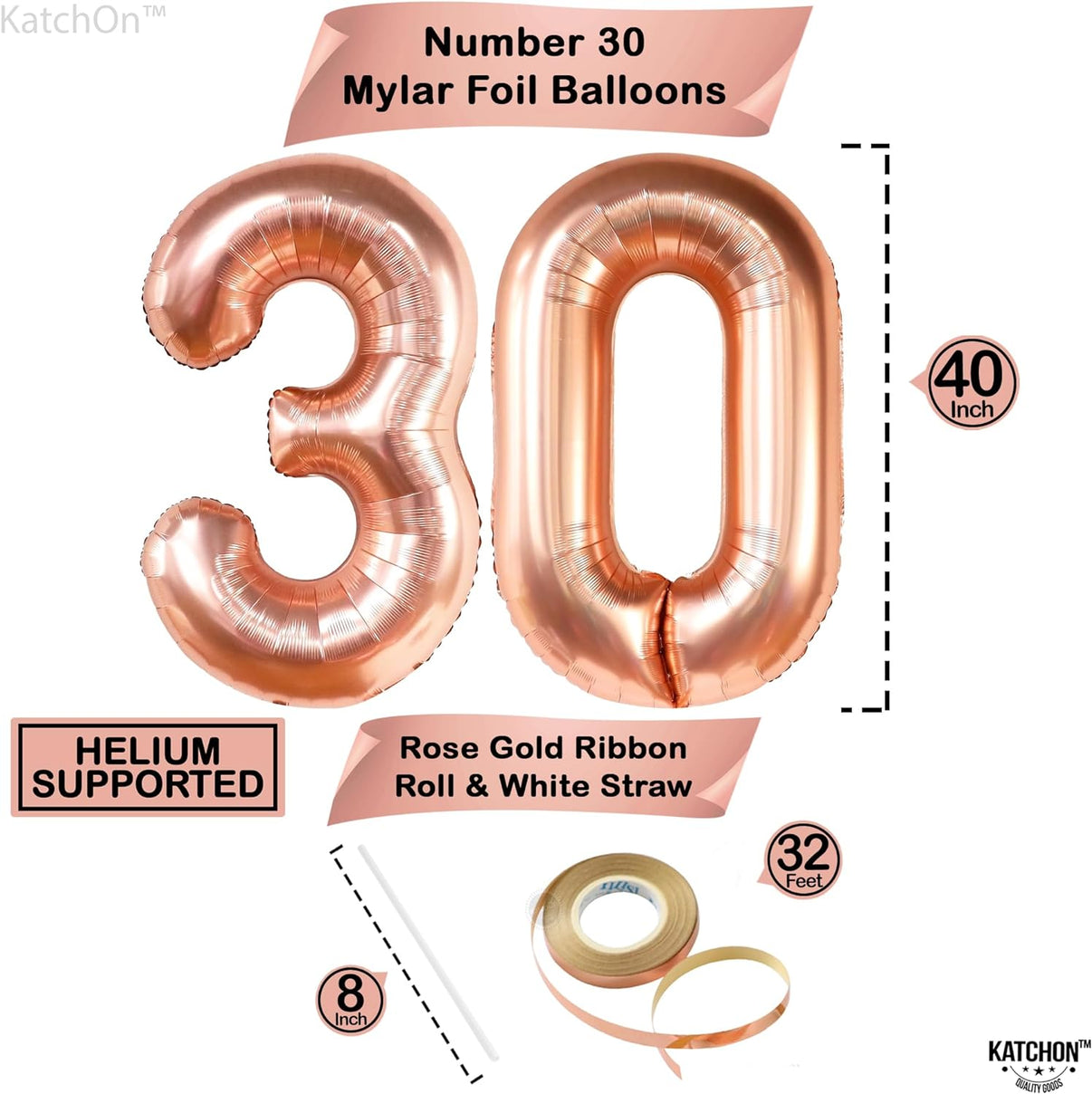 KatchOn, Rose Gold 30 Balloon Numbers Set - 40 Inch, Pack of 10 | Rose Gold 30 Balloons for 30th Birthday Decorations for Women | 30th Birthday Balloons with Confetti Balloons | 30th Balloons for Her