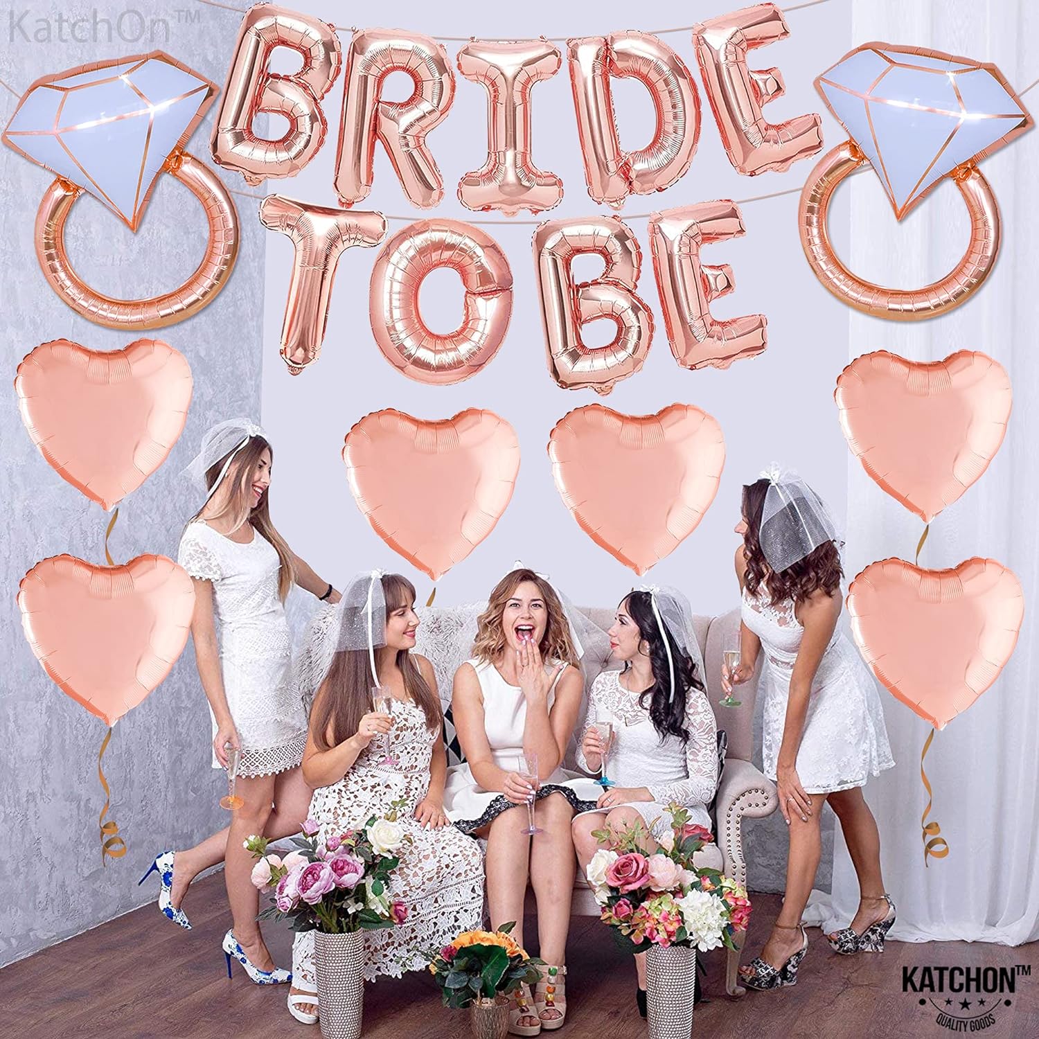 KatchOn, Rose Gold Bride To Be Balloons - Pack of 17 | Bride To Be Decorations | Bride Balloons for Bachelorette Party Decorations | Bridal Shower Balloons for Rose Gold Bridal Shower Decorations