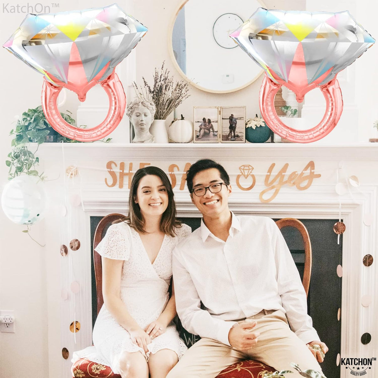KatchOn, Rose Gold Diamond Ring Balloon - 26 Inch, Pack of 2 | Engagement Ring Balloons, Engagement Party | Ring Foil Balloon for Wedding Decor | Diamond Balloons for Bachelorette Party Decorations
