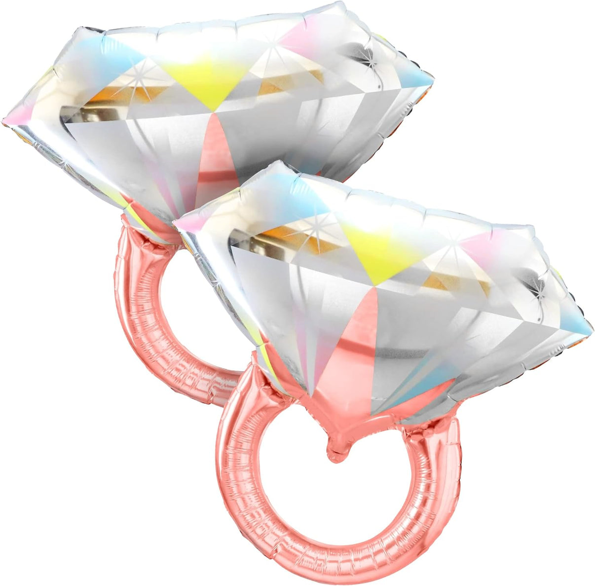 HELIUM SUPPORTED | STURDY | REUSABLE : Our helium supported, and durable rose gold diamond ring balloon is perfect addition to any engagement party decor, wedding reception, or even a disco bachelorette party. The sleek and shiny design will add a touch of elegance to any room, making it the perfect engagement decoration for your party. These wedding reception decorations will be sure to impress your guests and make for beautiful photos. add some sparkle to your special occasion!
