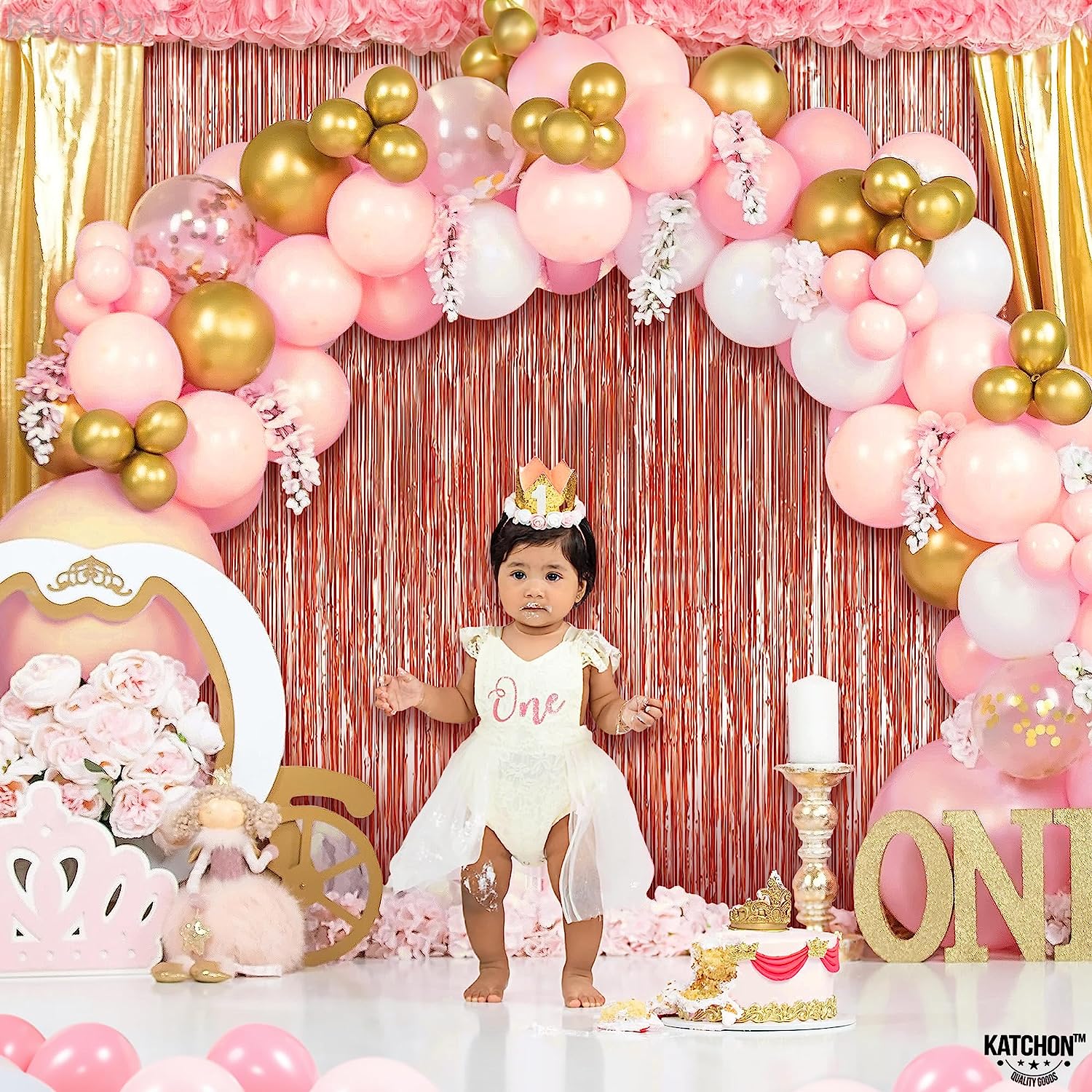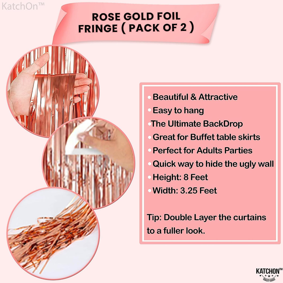 KatchOn, Rose Gold Fringe Curtain - XtraLarge 8x3.2 Feet, Pack of 2 | Rose Gold Fringe, Bachelorette Party Decorations, Rose Gold Party Decorations | Rose Gold Streamers, Rose Gold Birthday Fringe