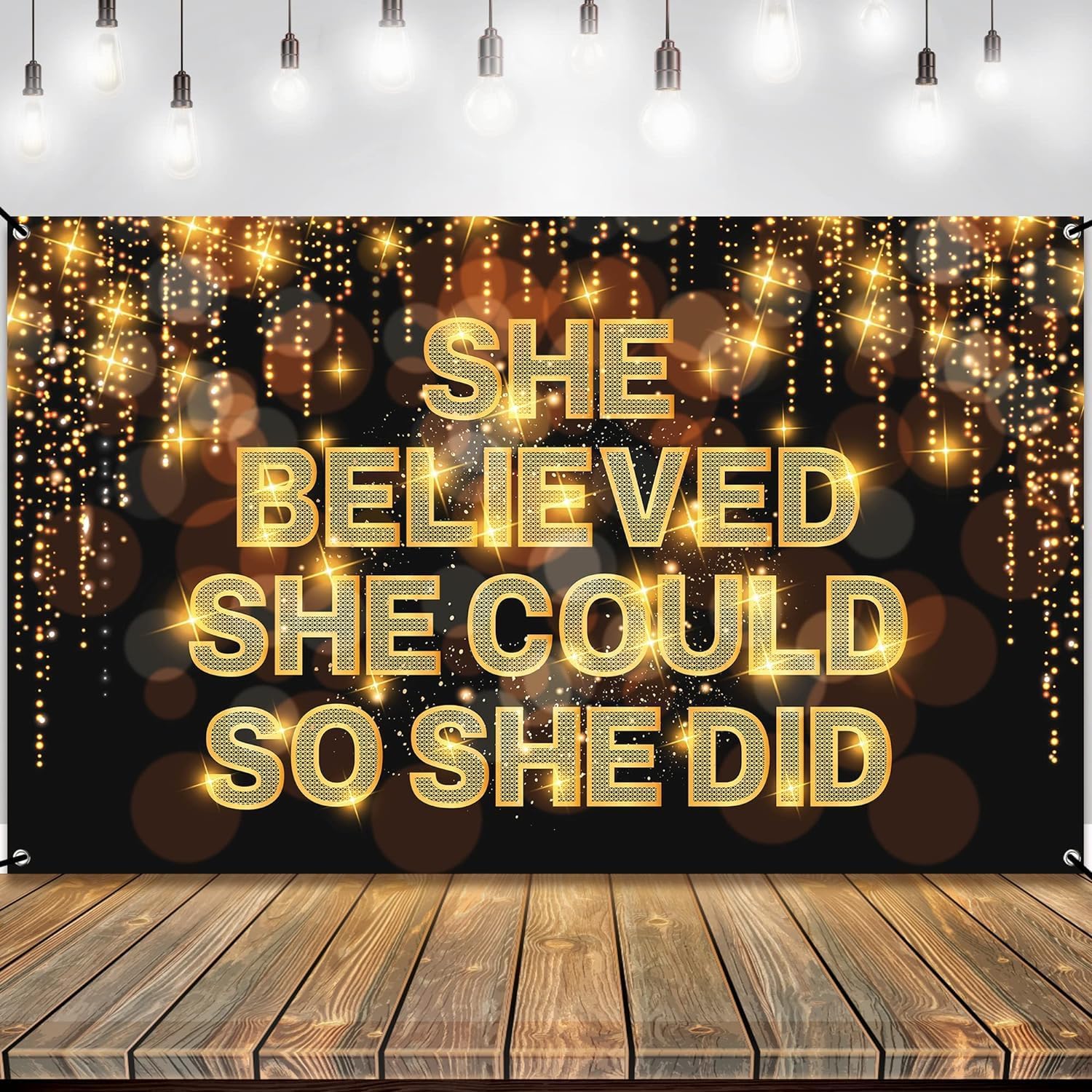 KatchOn, She Believed She Could So She Did Banner - Large, 72x44 Inch | Congratulations Backdrop, Congratulations Decorations | 2024 Graduation Party Decorations | Graduation Decorations Class of 2024
