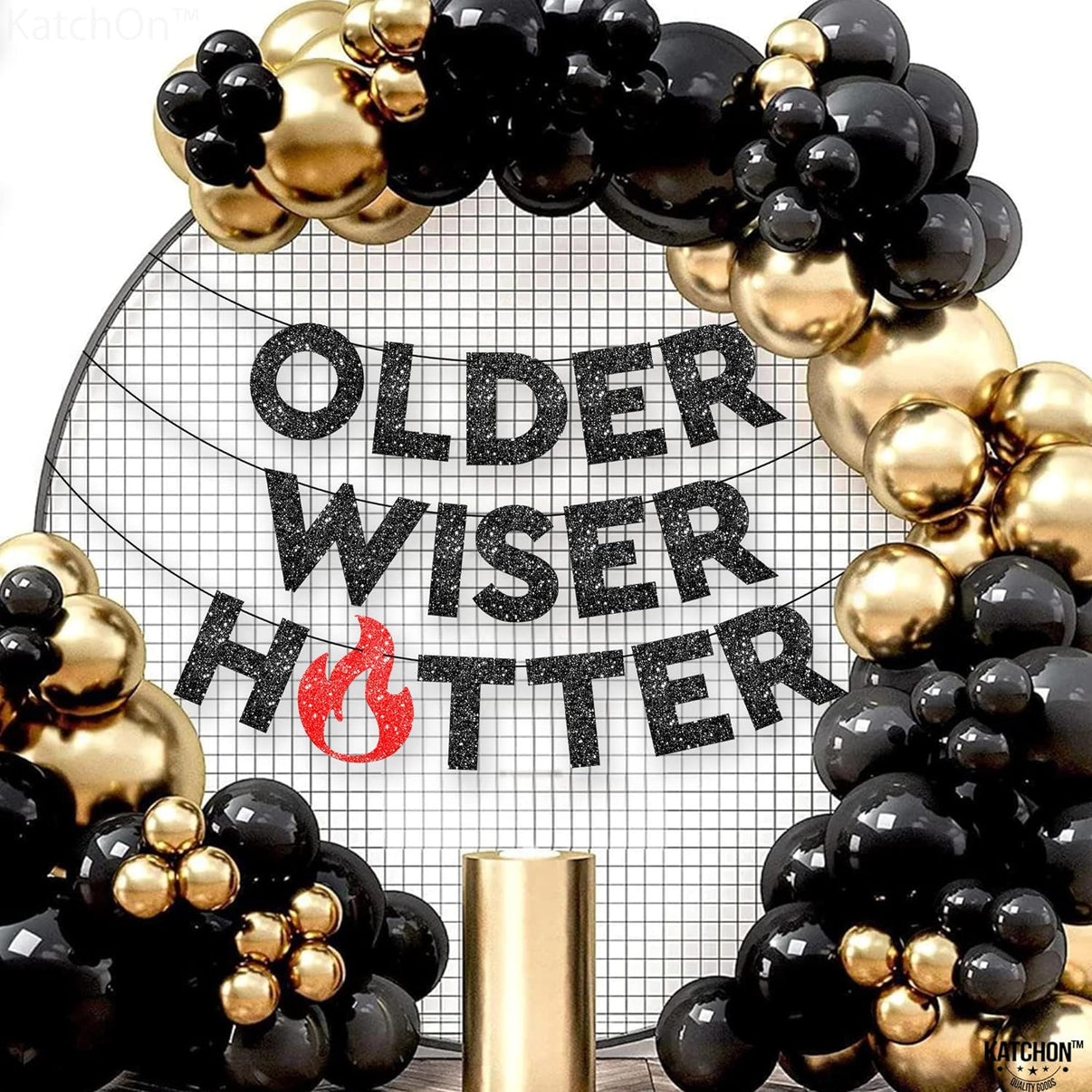 GLITTER 10 FEET | NO DIY REQUIRED | FUNNY BIRTHDAY BANNER - Looking for some unique and funny birthday banner for your birthday party? Well, this unique Older Wiser Hotter Birthday Banner will make birthday party banner more fun and memorable. Older wiser hotter birthday decorations banner comes with a size of 10 feet, pre assembled saving your time and effort. Older wiser hotter banner is perfect for men and women adult birthday party decorations for men and 50th birthday decorations men funny.