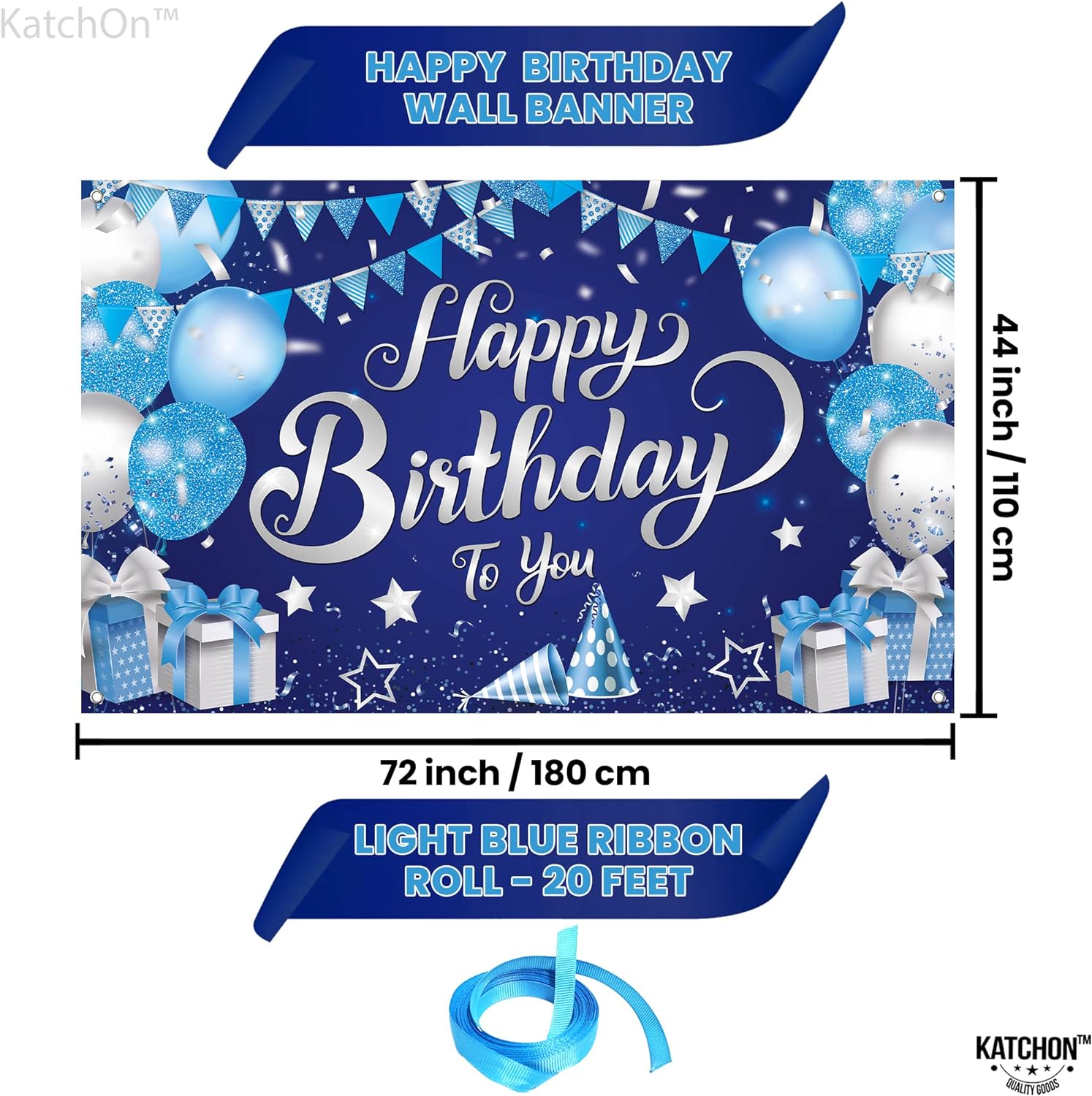 KatchOn, Silver and Blue Happy Birthday Backdrop - XtraLarge, 72x44 Inch | Happy Birthday Banner for Men | Blue Birthday Banner, Happy Birthday Decorations for Men | Blue Birthday Backdrop for Girls
