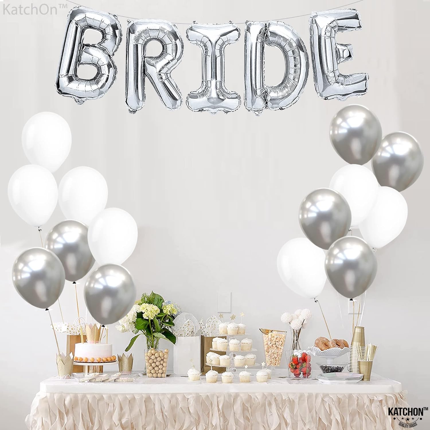 LARGE - PACK OF 23 | BRIDE BALLOONS SET: Planning a fabulous and elegant bridal shower before you tie the knots? Decorate your event with these authentic 16 inch bride balloons silver and 12 inch, pack of 18 silver and white latex balloons. Receive a charming silver color perfect for fun sweet bridal shower decor before your most awaited wedding day. These will complete your silver Party Decorations Supplies Kit. This bride silver balloons are also ideal for 80s bachelorette party decorations.
