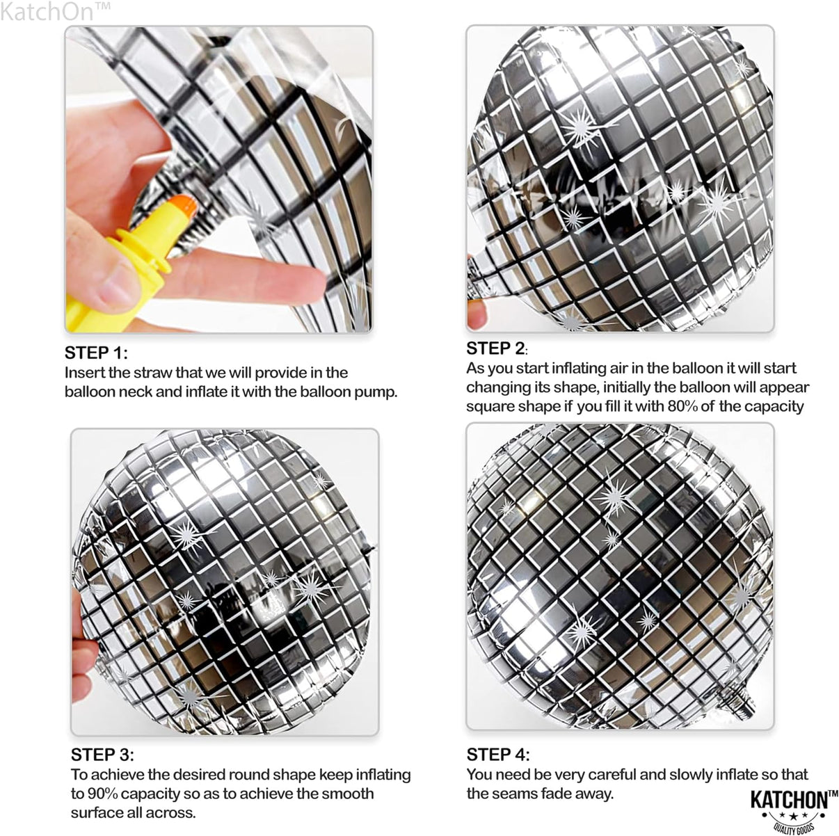 PACK OF 12 | HELIUM SUPPORTED : Use helium supported metallic disco ball balloon decorations with pack of 12 that will be the life of Retro disco ball party decorations. If one foil balloons can create effect then we have got you 12 of these big multicolor disco ball balloons kit. This deal does not end here, these beautiful large silver foil balloon kit are also reusable. Create an elegant decor for 70s theme party decorations with these KatchOn silver disco ball balloons