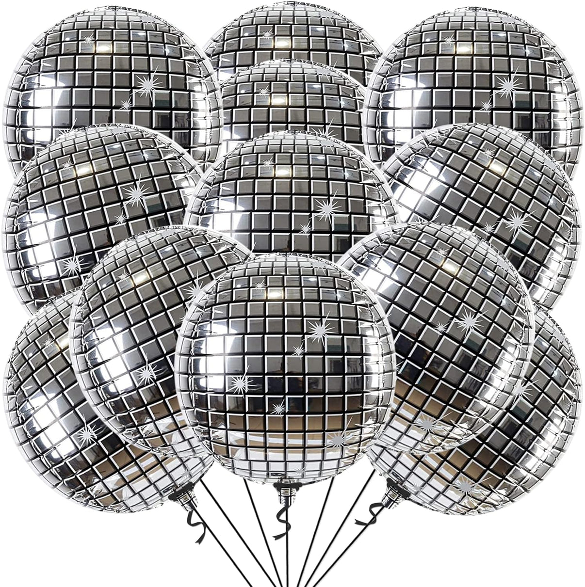 KatchOn, Silver Disco Ball Balloons - 22 Inch, Pack of 12 | Disco Bachelorette Party Decorations | 4D Sphere Disco Balloons for Disco Party Decorations | Disco Ball Decor, Silver Party Decorations