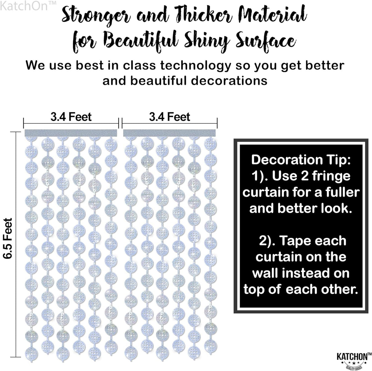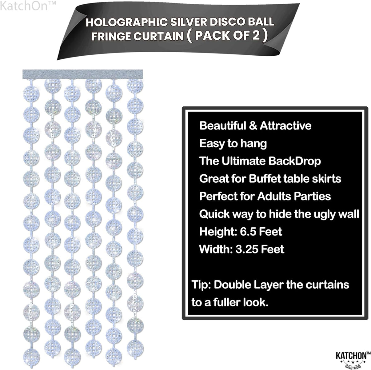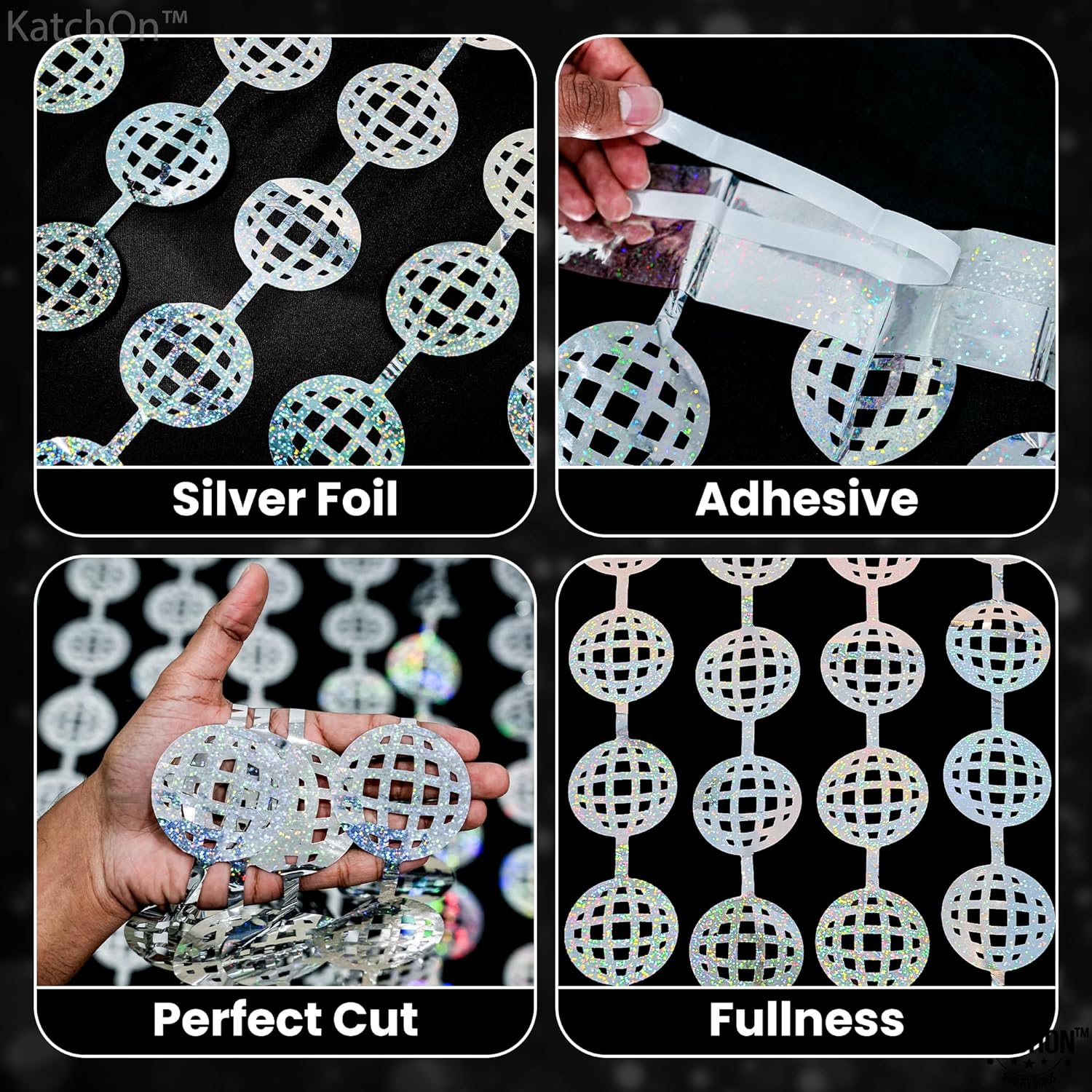 KatchOn, Silver Disco Ball Curtain - XtraLarge, 6.5 Feet, Pack of 2 | Silver Streamers Backdrops for Photoshoot | Disco Ball Backdrop for Parties, Silver Foil Fringe Curtain, Disco Party Decorations