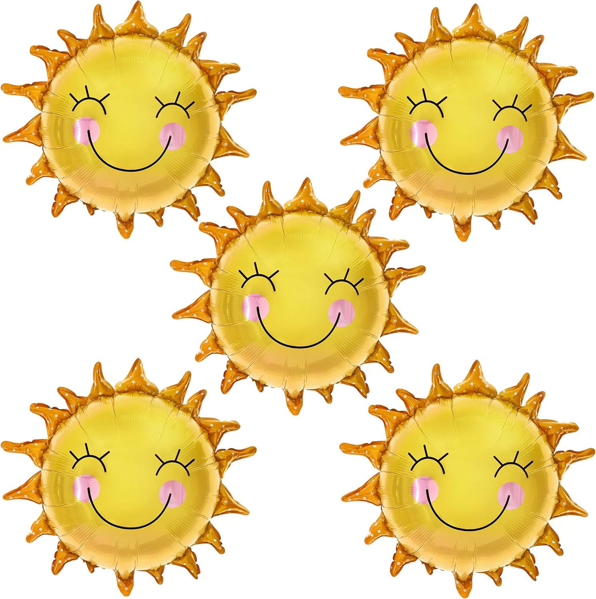 KatchOn, Smile Face Sun Balloons for Party - 26 Inch, Pack of 5 | Mylar Sunshine Balloons, Summer Balloons for Sunshine First Birthday Decorations | First Trip Around The Sun Birthday Decorations