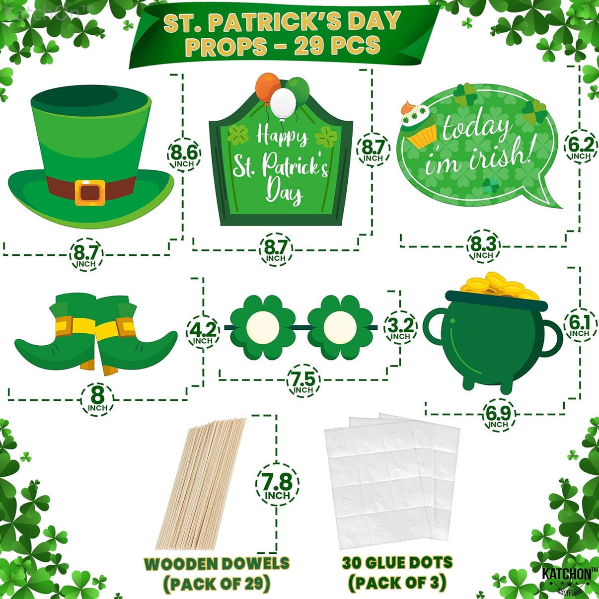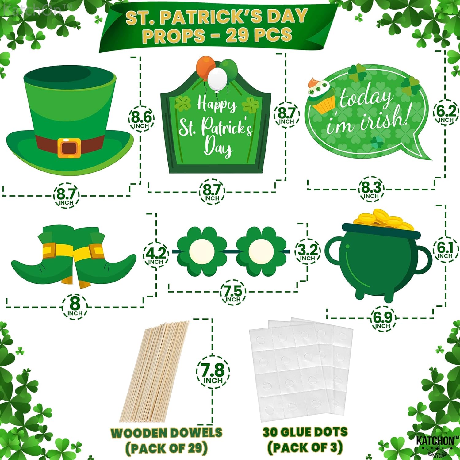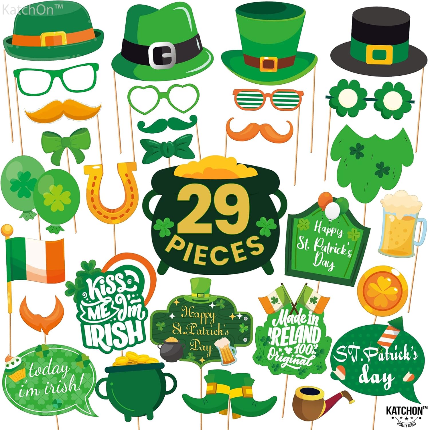 KatchOn, St Patricks Day Photo Props - Pack of 29 | St Patricks Day Decorations | St Patricks Photo Props for St Patricks Day Selfie Props | St Patricks Day Photo Booth Props | St Patricks Day Props
