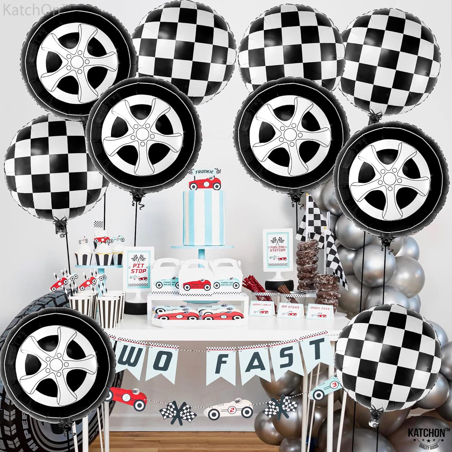 KatchOn, Tire Balloons and Checkered Balloon Set - 18 Inch, Pack of 12 | Tire Balloon for Two Fast Two Curious Birthday Decorations | Two Fast Birthday Decorations Boy | Cars Birthday Party Supplies