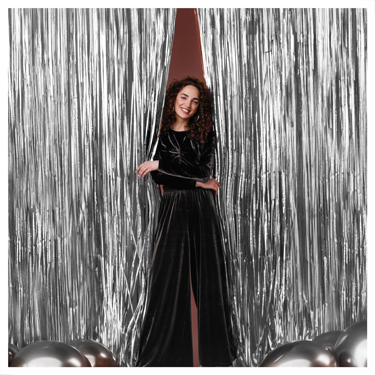 WIDE APPLICATIONS : Show off your creativity by using this silver fringe curtain backdrop for bachelorette party decorations. You can pair silver backdrop curtain with other fringe curtains of different colors to achieve the color combination that you desired. You could pair and match this elegant silver foil curtain with black fringe curtain to achieve a grandeur and sophisticated shade for Disco theme party decorations. Walk into a classy party reception using this silver curtains for backdrop