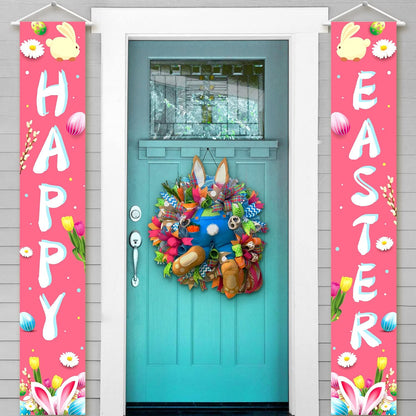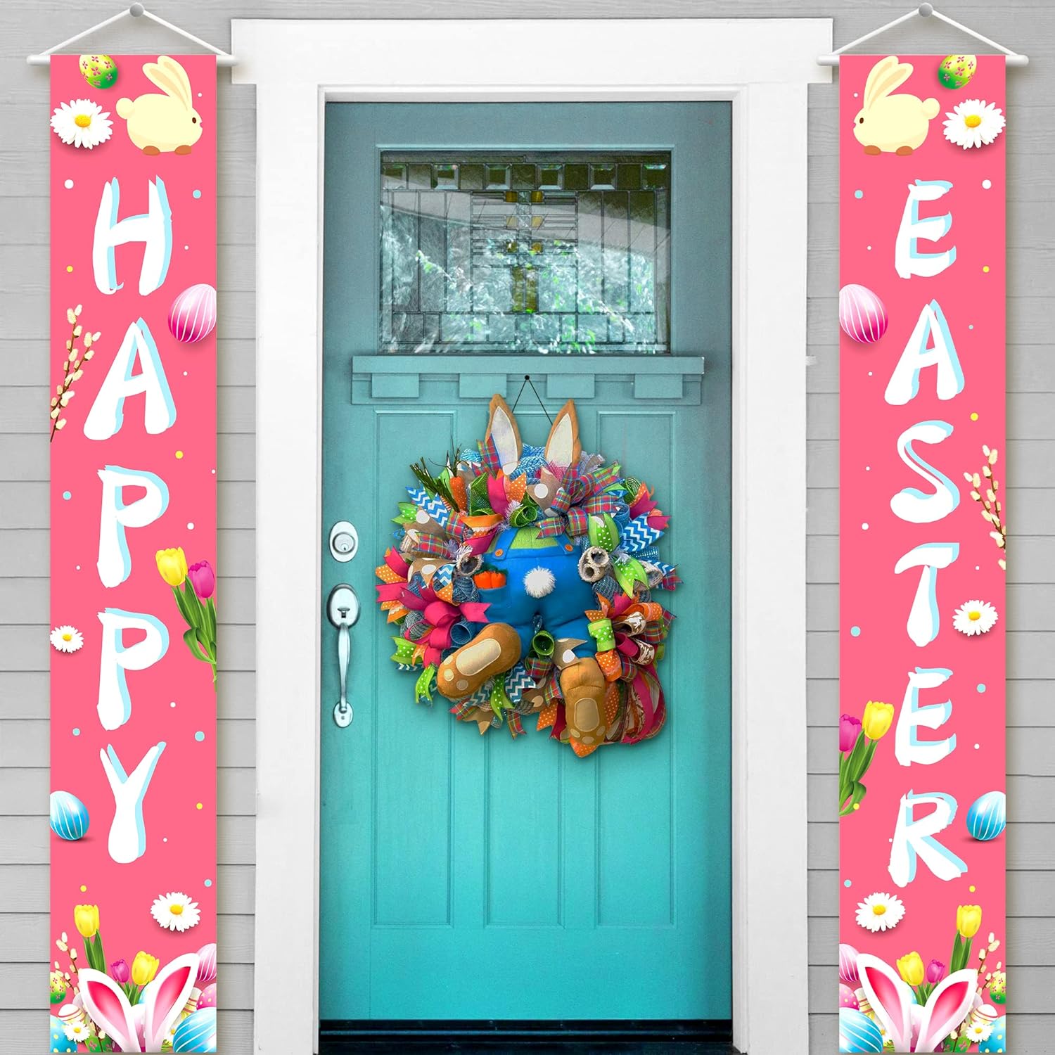 LARGE SIZE: 72x12 INCH | PINK EASTER BANNER FOR DOOR DECORATIONS : Elevate your easter decorations with our impressive 72x12 inch Easter Door Banner. Crafted in a delightful pink hue with the elements of bunny, easter egg, flowers, etc. this easter porch sign not only adds a pop of color but also adding a charming effect to your easter party decorations. This easter banners for outside will perfectily for transforming your door into a festive focal point.