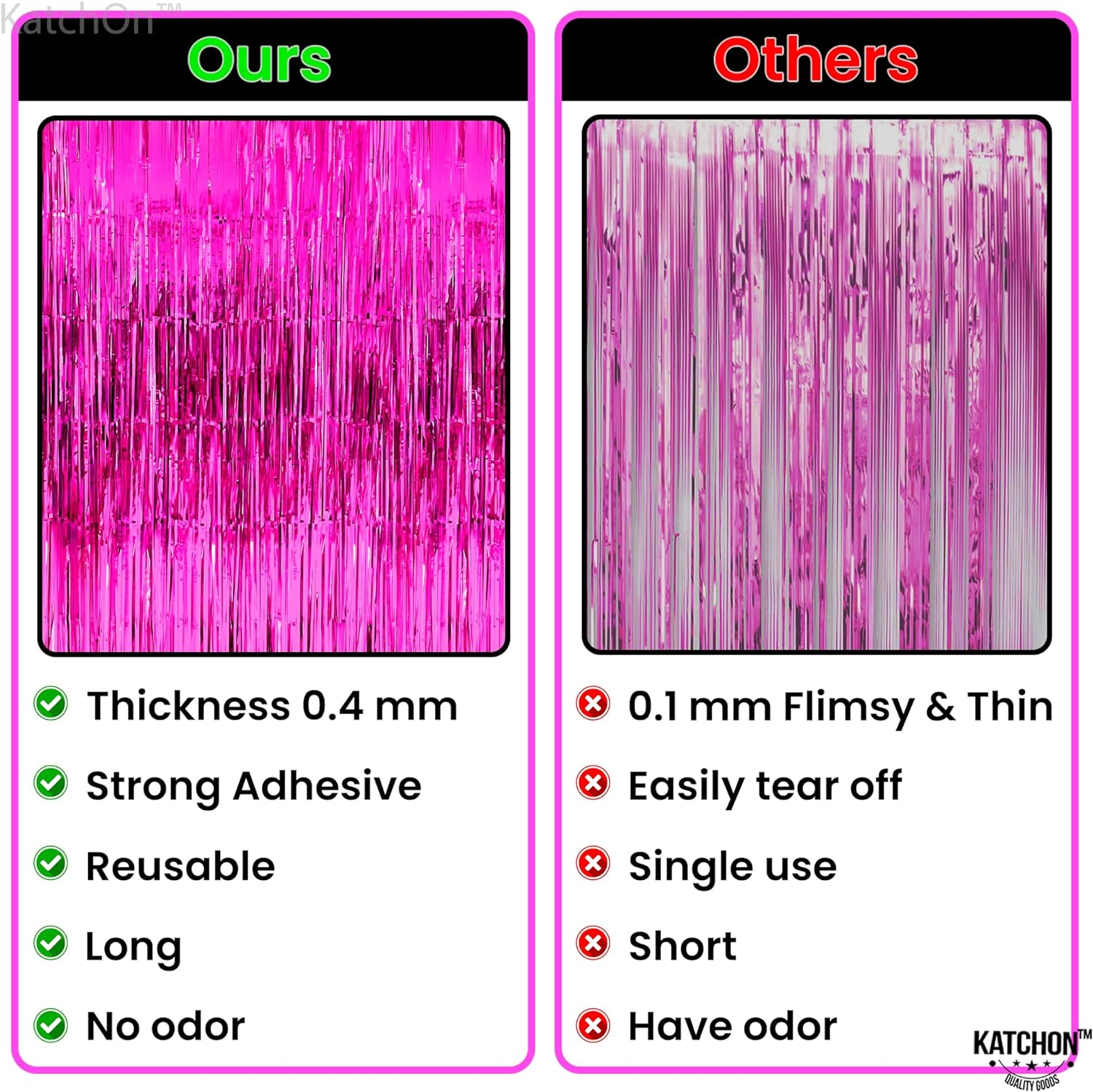 STURDY AND DURABLE | REUSABLE : This shiny hot pink streamers is a perfect a hot pink party decorations. Because this hot pink foil curtain is durable enough to be re-used for any other party. This hot pink curtain backdrop are very easy to use and store for your upcoming bright pink birthday decor also. Inexpensive with a Grade ‘A’ quality katchon pink backdrop. The cut of the pink tinsel curtain party backdrop is pretty wide, so hot pink tinsel backdrop won't easily strip down.