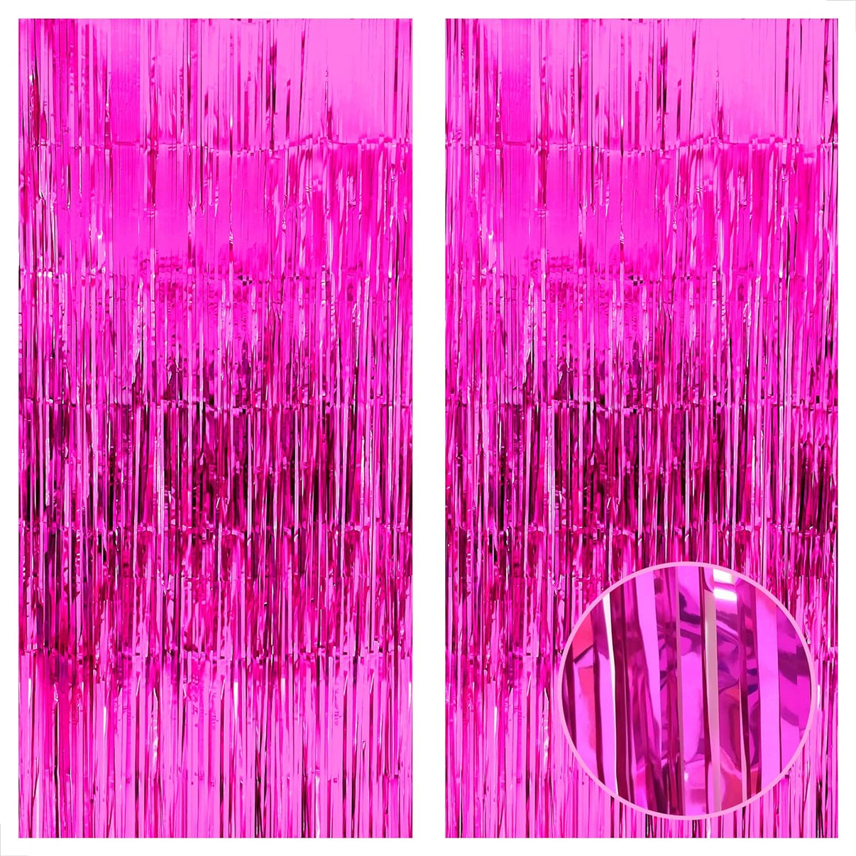 KatchOn, XtraLarge Hot Pink Fringe Backdrop - 6.4x8 Feet, Pack of 2 | Hot Pink Streamer Backdrop for Hot Pink Birthday Decorations | Hot Pink Backdrop for Galentines Day Decorations | Valentines Decor