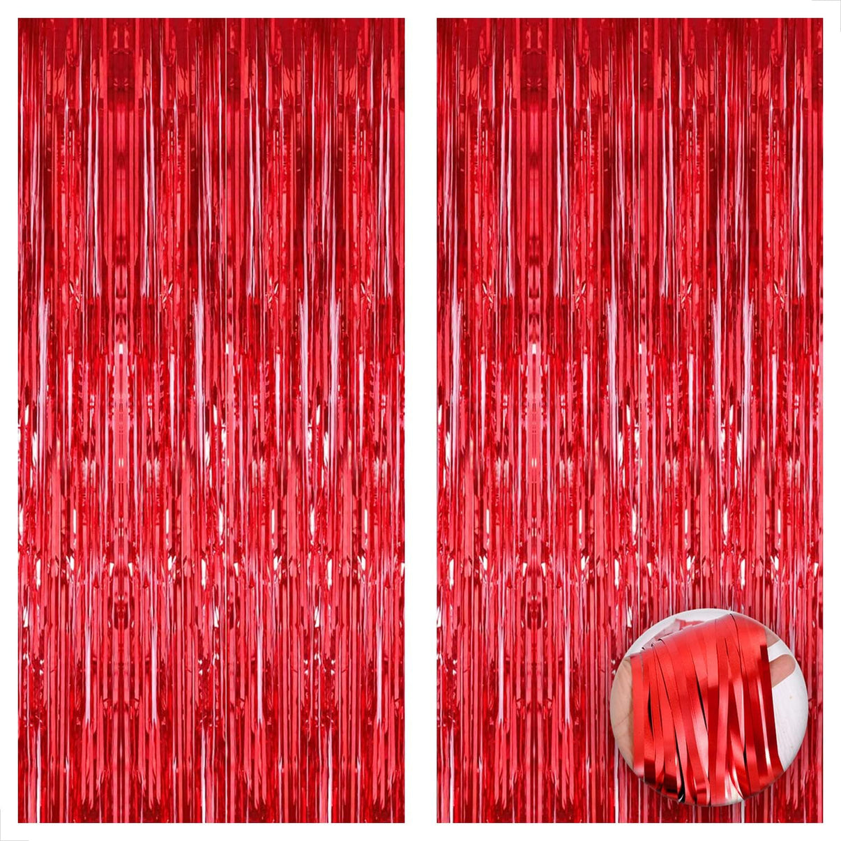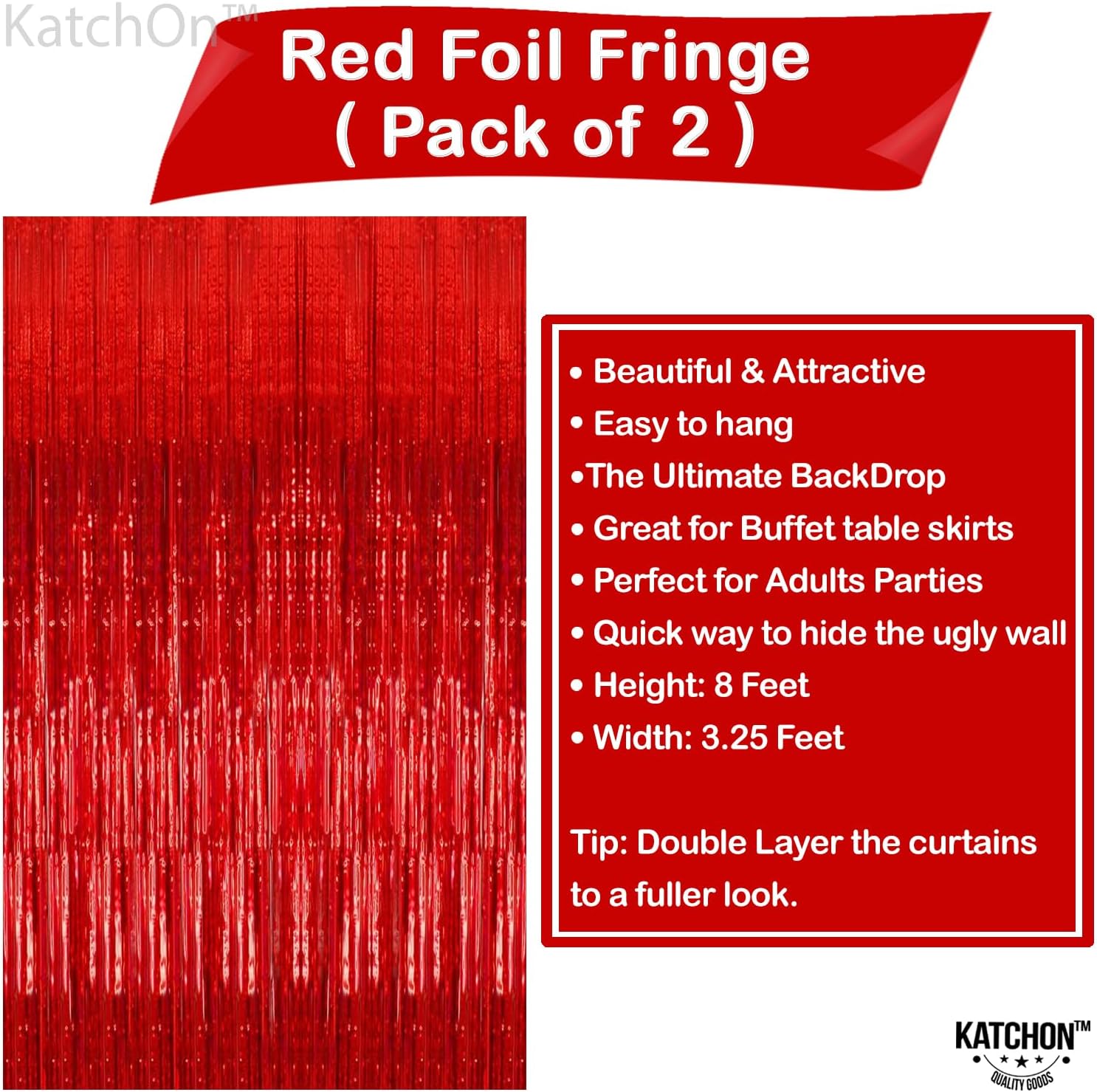 XTRALARGE SIZE | 6.4x8 FEET, PACK OF 2 RED FOIL FRINGE CURTAIN : Thinking about what to add on your valentines day party decorations or red party decorations? With this Pack of 2 Red Foil Fringe Curtain you can make an elegant entrance for your loved ones on your valentines decorations to make it more romantic. Let them be amazed with your DIYs with red valentines streamers. This valentines day party decor curtains measures 6.4 feet wide x 8 feet long in total.