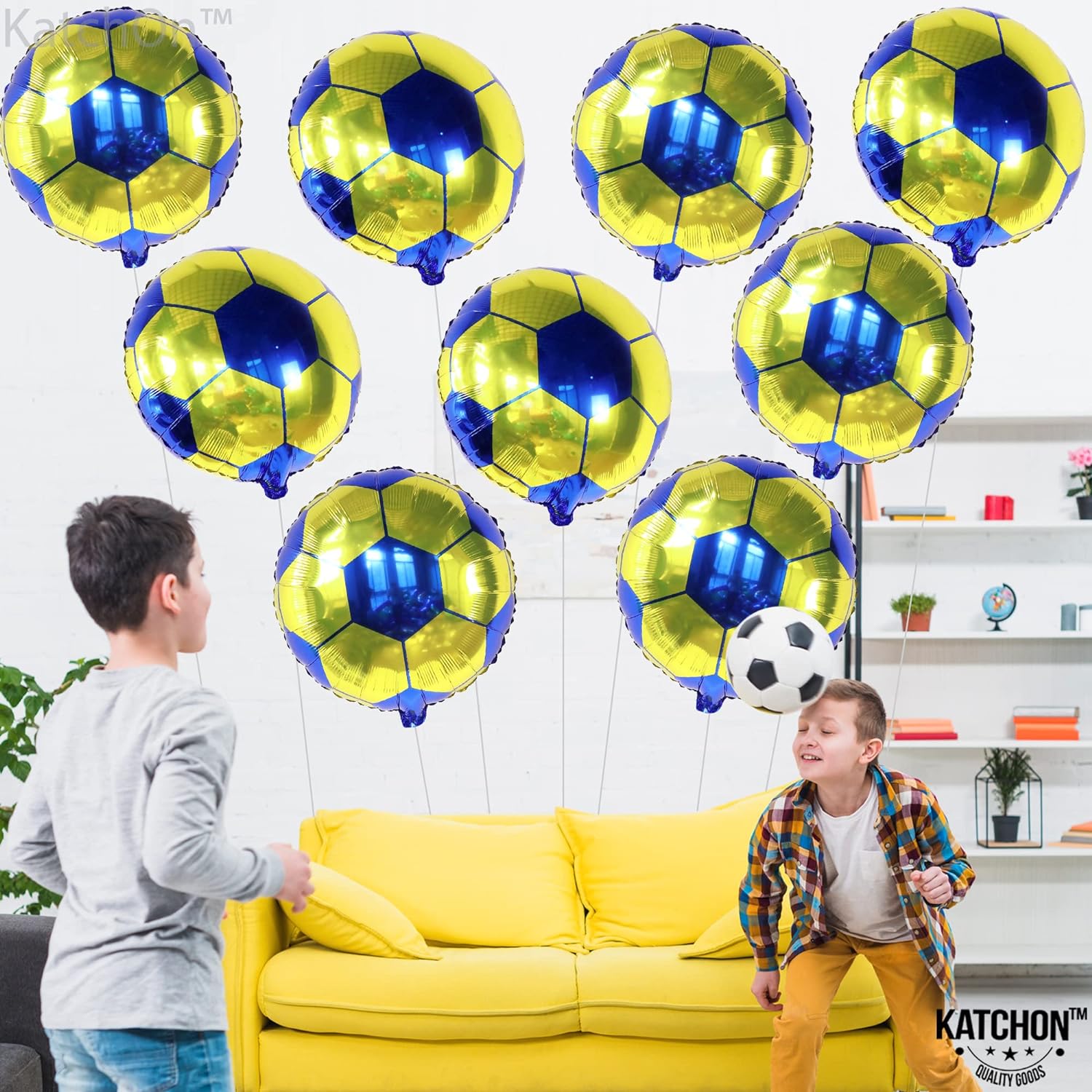 KatchOn, Yellow and Blue Soccer Balloons - 18 Inch, Packof 10 | Soccer Ball Balloons, America Soccer Team Party Decorations | Yellow and Blue Soccer Party Decorations | Soccer Birthday Decorations